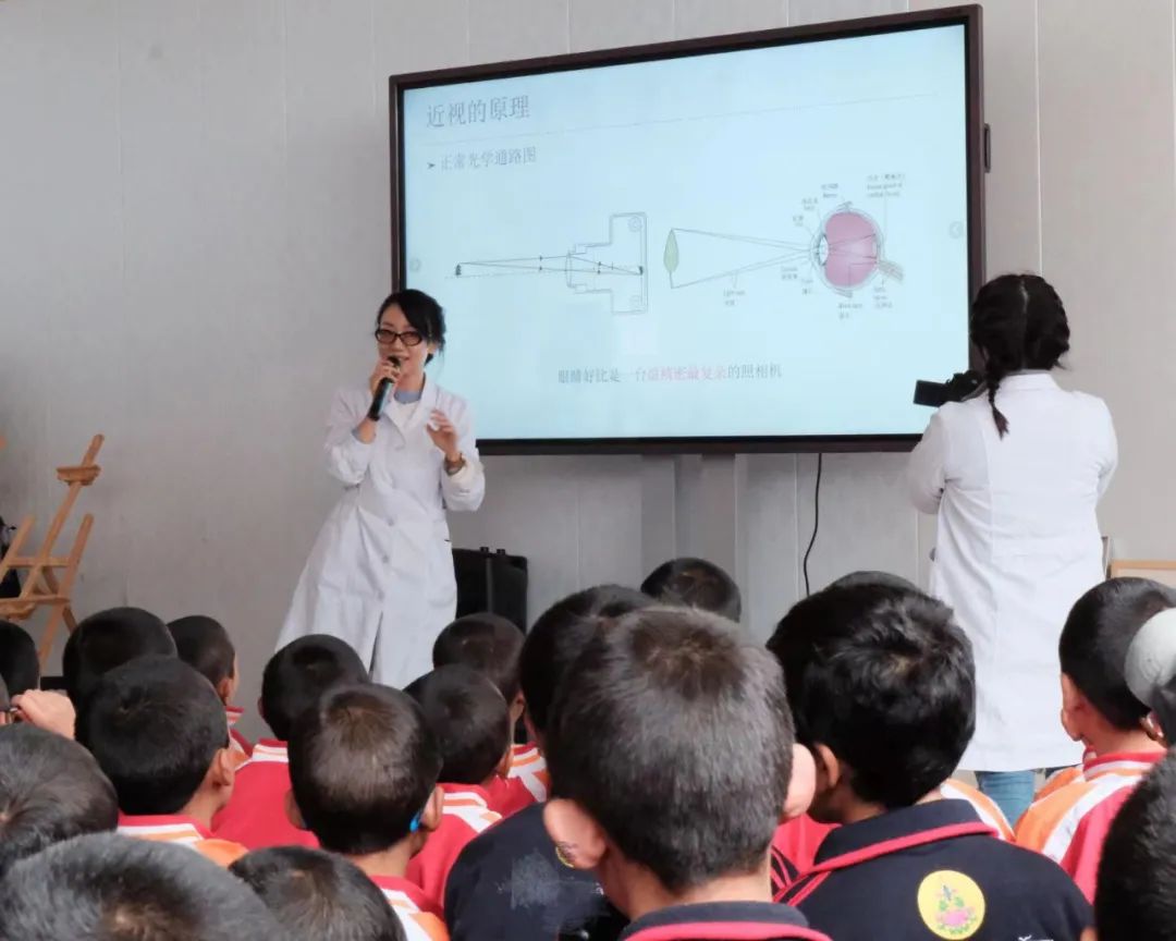 ? ? ? 在塔公鄉(xiāng)做眼科篩查時(shí),隊(duì)員們發(fā)現(xiàn)高原地區(qū)的近視患者也有不少。為了更好地做好近視防控,醫(yī)療隊(duì)還為當(dāng)?shù)?00多名師生進(jìn)行了視力篩查,并帶去了一堂干貨滿滿的近視防控科普講座。主講醫(yī)生張赟告訴記者:“其實(shí)當(dāng)?shù)貛熒鷮?duì)近視防控還有很多認(rèn)識(shí)盲區(qū),比如孩子們很少有機(jī)會(huì)接觸手機(jī)和平板電腦,但是近視的孩子有不少,當(dāng)?shù)乩蠋熞膊涣私馄渲械脑?。?dāng)我們一看孩子的日常作息,發(fā)現(xiàn)他們近距離學(xué)習(xí)和閱讀時(shí)間較多,造成睫狀肌得不到休息,就容易導(dǎo)致近視。對(duì)于這些盲區(qū),我們就對(duì)師生們一一進(jìn)行科普宣講?!?