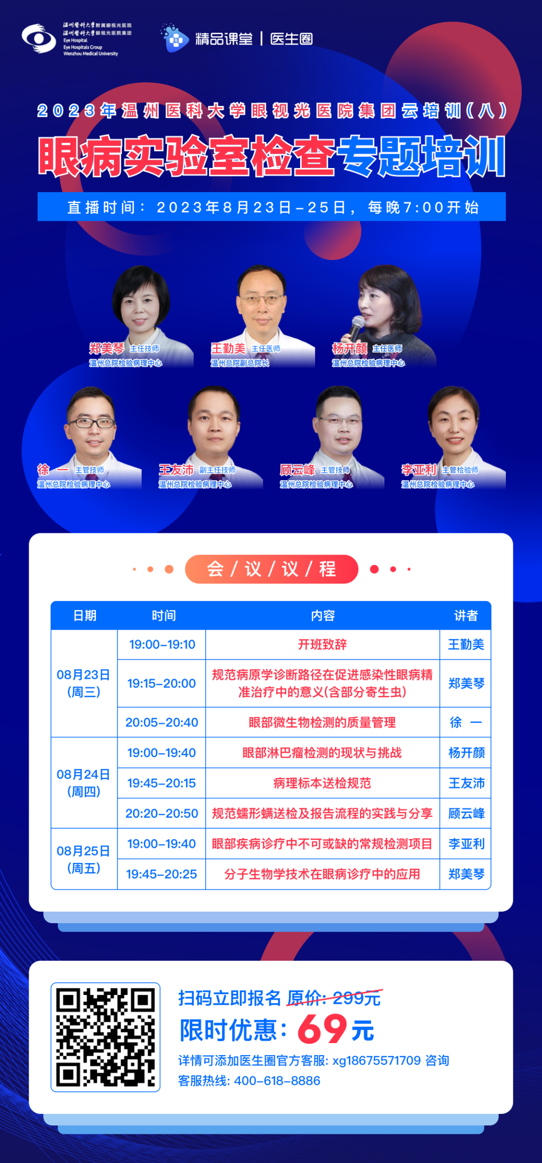 ? ? ? 眼科的診療離不開眼病實驗室的支持。近年來,全國眼科檢驗技術發(fā)展迅猛,給臨床眼病的診療帶來精準的檢驗信息。為了規(guī)范眼病實驗室檢查送檢流程,提高醫(yī)師團隊對眼病實驗室檢查的認識,溫州醫(yī)科大學眼視光醫(yī)院集團首席醫(yī)療官王勤美教授,攜手溫州總院檢驗病理中心資深講師團,為大家?guī)?天7課時的“眼病實驗室檢查”專題系列培訓課程。授課內容豐富,實用性強。
