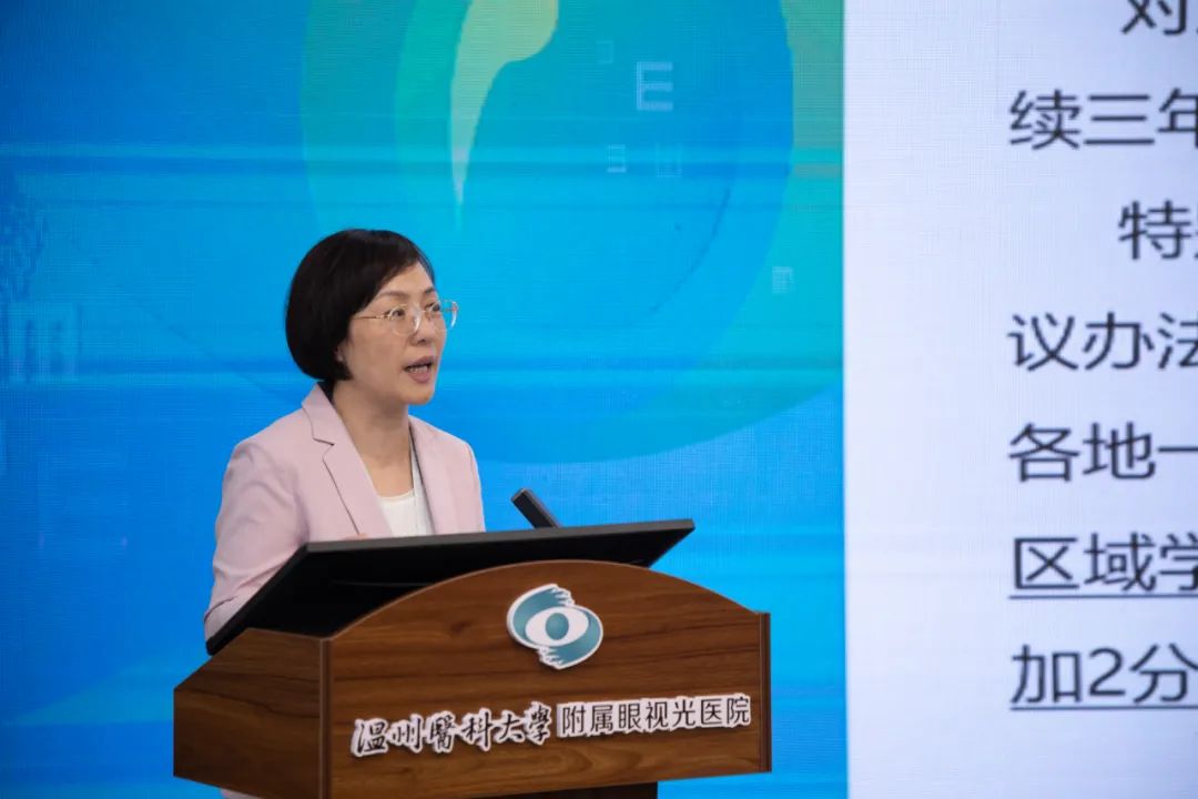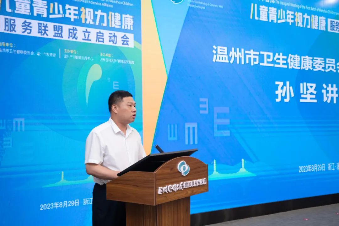 ? ? ?溫州市衛(wèi)生健康委黨委副書記孫堅,市教育局體衛(wèi)藝處處長黃萬統(tǒng),市衛(wèi)生健康委疾控處副處長潘建芬,市眼健康指導中心專委會主任委員、眼視光醫(yī)院院長吳文燦教授,市眼健康指導中心專委會副主任委員、眼視光醫(yī)院黨委副書記陳潔教授,以及全市首批兒童青少年視力健康服務(wù)聯(lián)盟單位代表、眼視光醫(yī)院相關(guān)職能部門負責人出席會議。陳潔教授主持會議。