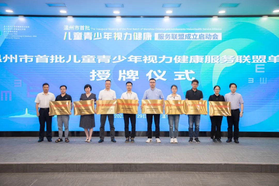 ? ? ?會上舉行了溫州市首批兒童青少年視力健康服務(wù)聯(lián)盟單位授牌儀式。溫州醫(yī)科大學附屬眼視光醫(yī)院、附屬第一醫(yī)院、附屬第二醫(yī)院,溫州市中西醫(yī)結(jié)合醫(yī)院,溫州市中醫(yī)院,瑞安市人民醫(yī)院,樂清市人民醫(yī)院,平陽縣人民醫(yī)院代表上臺接受牌匾。
