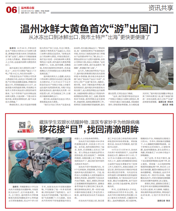? ? ? 鄭欽象教授說,這次手術(shù)很成功,約一周后可以拆線。同時提醒加央次丹,回家后要避免揉眼睛和長時間紫外線照射,防止復(fù)發(fā)。