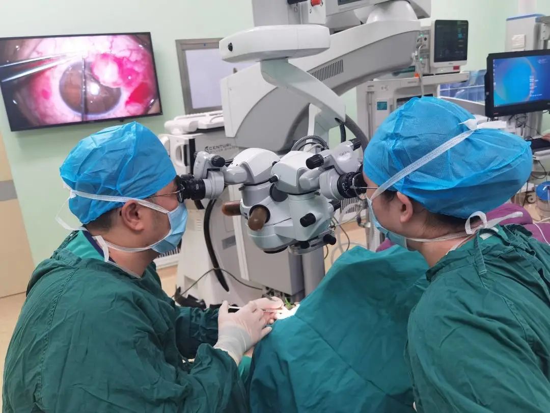? ? ? 在制定詳細(xì)的手術(shù)方案后,由鄭欽象教授為其主刀手術(shù)。手術(shù)中,鄭欽象教授在顯微鏡下小心翼翼地把角膜腫物剝離。由于腫物長出時間較久,已緊貼角膜,造成角膜混濁,新生血管長入角膜,花了10分鐘才將這個腫物摘除。