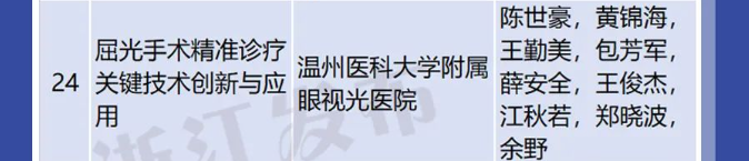 ? ? ? 其中,溫醫(yī)大附屬眼視光醫(yī)院屈光手術臨床中心陳世豪、王勤美教授團隊的“屈光手術精準診療關鍵技術創(chuàng)新與應用”喜獲浙江省科學技術進步獎二等獎。