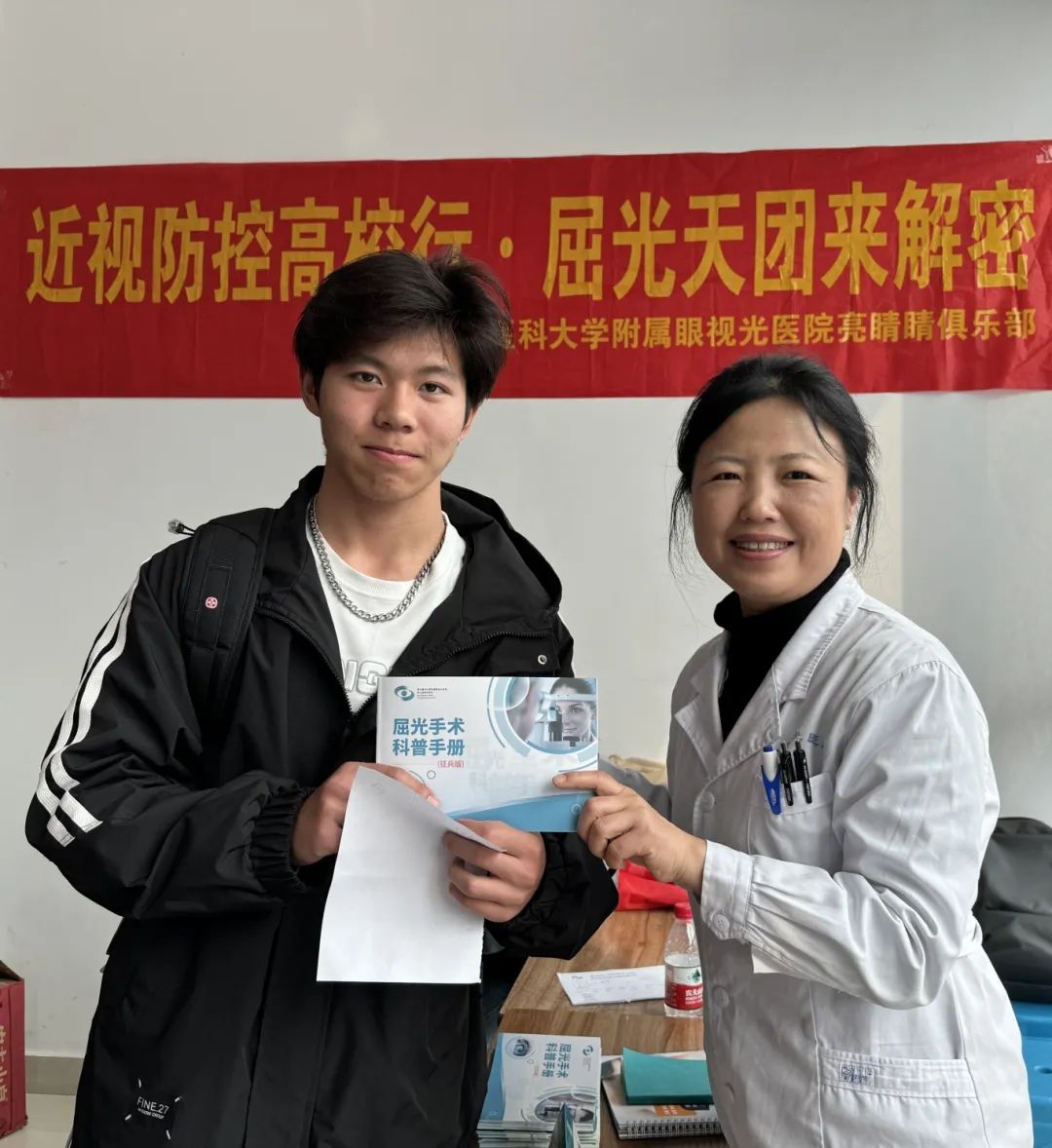 ? ? ?講座結(jié)束后,由眼視光醫(yī)院資深眼科醫(yī)生和志愿者組成的公益團(tuán)隊(duì)為在座師生們提供了包括視力檢查、電腦驗(yàn)光、裂隙燈檢查、眼鏡度數(shù)檢測(cè)、鏡架調(diào)試、眼鏡清洗、眼健康咨詢以及屈光手術(shù)咨詢?cè)趦?nèi)的全方位義診服務(wù)。