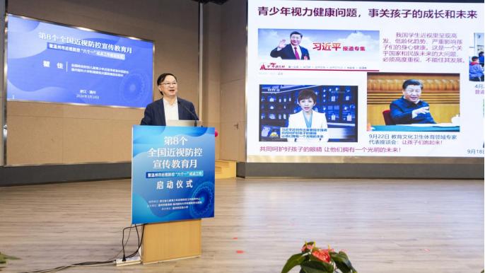 ? ? ? 3月18日,全國第8個近視防控宣傳教育月暨溫州市近視防控“六個一”試點工作啟動儀式在溫州市實驗小學(xué)舉行。此次活動由浙江省兒童青少年近視防控工作指導(dǎo)中心指導(dǎo),溫州市教育局、溫州醫(yī)科大學(xué)附屬眼視光醫(yī)院共同主辦。來自全市各縣(市、區(qū))教育局主要負(fù)責(zé)人、近視防控工作負(fù)責(zé)人及67所省市近視防控特色學(xué)校代表參會。