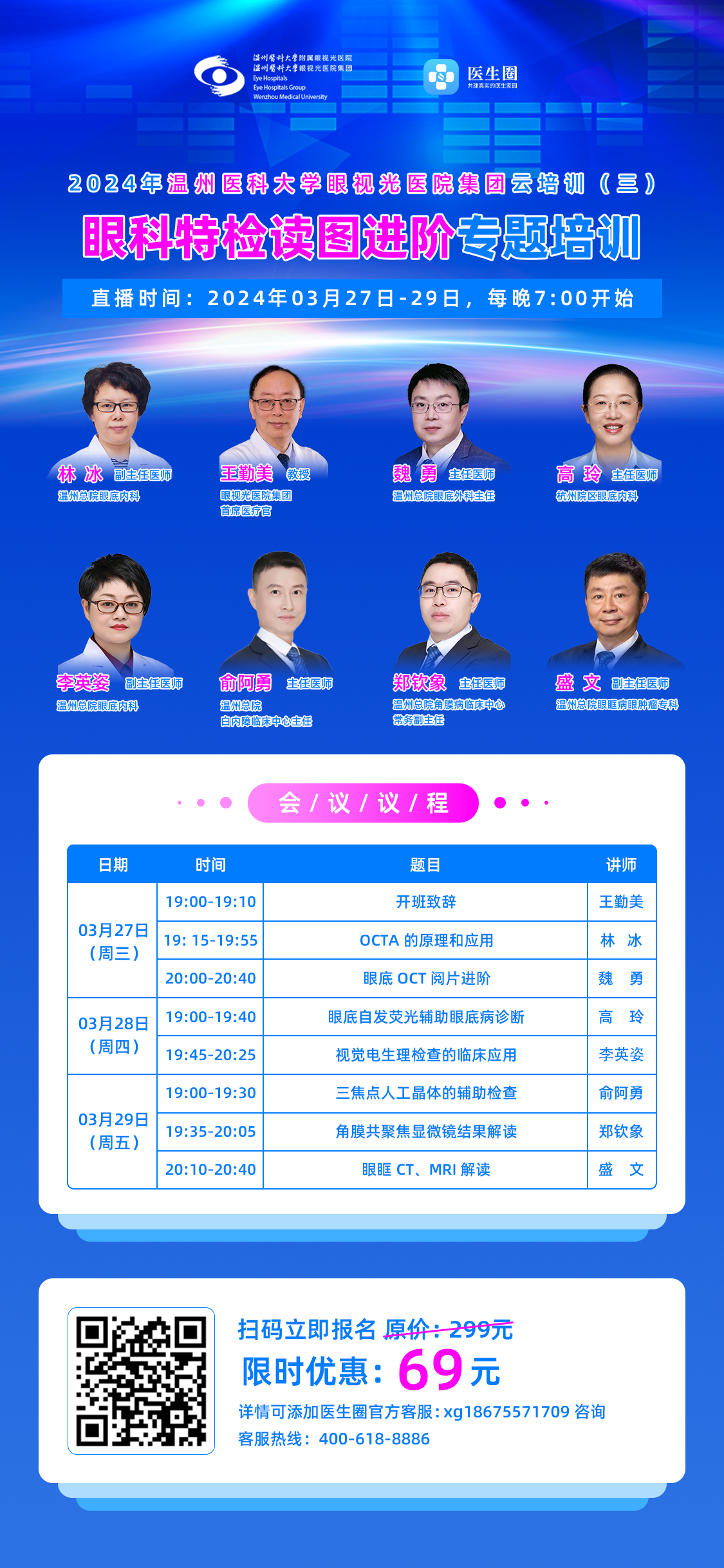 ? ? ? 為提高醫(yī)師團隊對輔助檢查的解讀和眼病診療水平,溫州醫(yī)科大學眼視光醫(yī)院集團首席醫(yī)療官王勤美教授,攜手資深講師團,為大家?guī)?天7課時的“眼科特檢讀圖進階”專題系列培訓課程。授課內(nèi)容豐富,實用性強,探討和解決臨床的實際問題。
