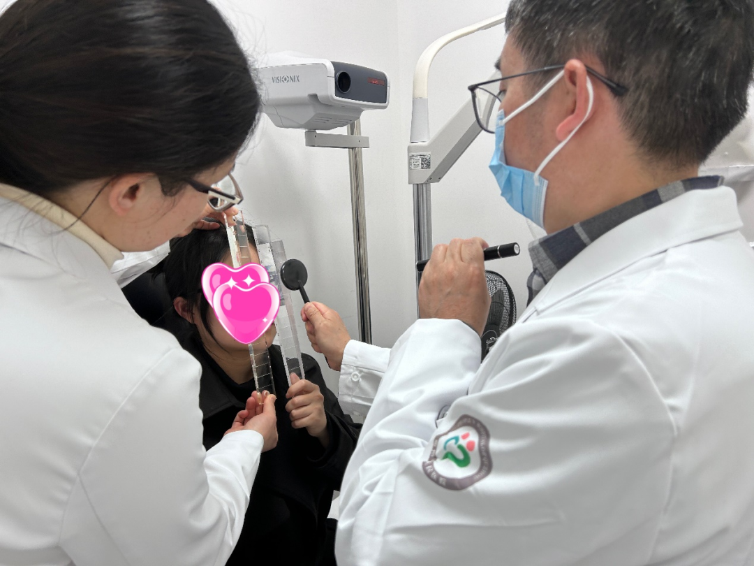 ? ? ? 就診后,余煥云主任對(duì)陳阿姨進(jìn)行了系列檢查,發(fā)現(xiàn)是大角度的非屈光調(diào)節(jié)性內(nèi)斜視,俗稱“斗雞眼”。建議進(jìn)行手術(shù)治療。