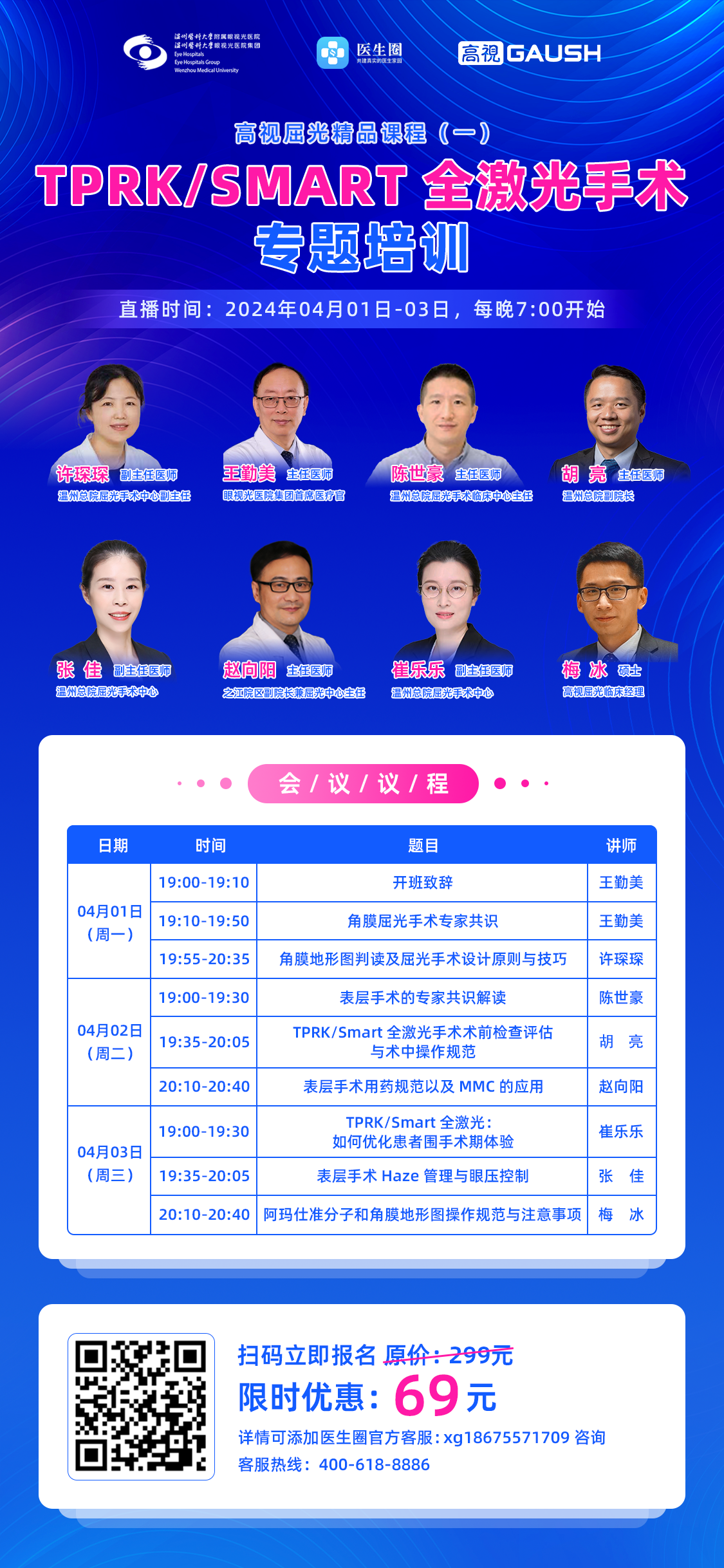 ? ? ? 為了更好地促進(jìn)角膜表層屈光手術(shù)開(kāi)展與應(yīng)用,進(jìn)一步規(guī)范TransPRK/Smart全激光手術(shù)操作技術(shù),特邀溫州醫(yī)科大學(xué)眼視光醫(yī)院集團(tuán)專家團(tuán),溫州醫(yī)科大學(xué)眼視光醫(yī)院集團(tuán)首席醫(yī)療官王勤美教授,以及資深講師團(tuán),為大家?guī)?lái)3天8課時(shí)的“TPRK/Smart 全激光手術(shù)”專題系列培訓(xùn)課程。授課內(nèi)容豐富,實(shí)用性強(qiáng),探討和解決臨床的實(shí)際問(wèn)題。