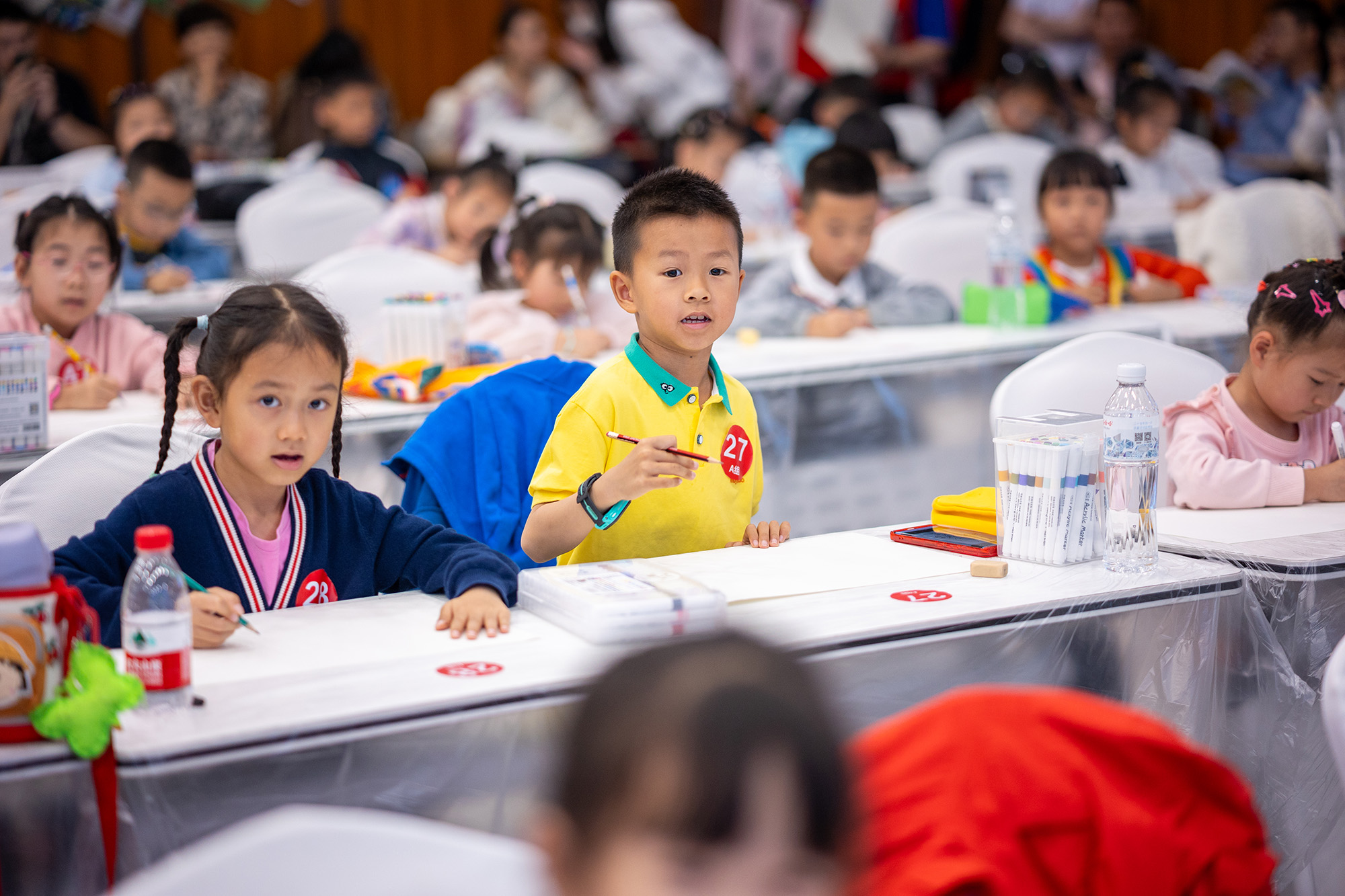 ? ? ?帶著滿滿的收獲,小選手們在志愿者的引導(dǎo)下,有序的來到比賽場地。主辦方提前布置好會場,把歷屆獲獎作品懸掛在會場周圍,為每位參賽小朋友們準(zhǔn)備統(tǒng)一比賽用紙,鋪上桌布……小朋友們分幼兒組和少兒組分別進(jìn)行比賽。接下來,孩子們將開啟了屬于自己的一場繪畫之旅,大家結(jié)合參觀研學(xué)的所見所聞,將自己對眼睛的獨(dú)特思考描繪在畫紙上,他們有的若有所思,有的埋頭奮筆,一幅幅美好的繪畫作品躍然紙上......