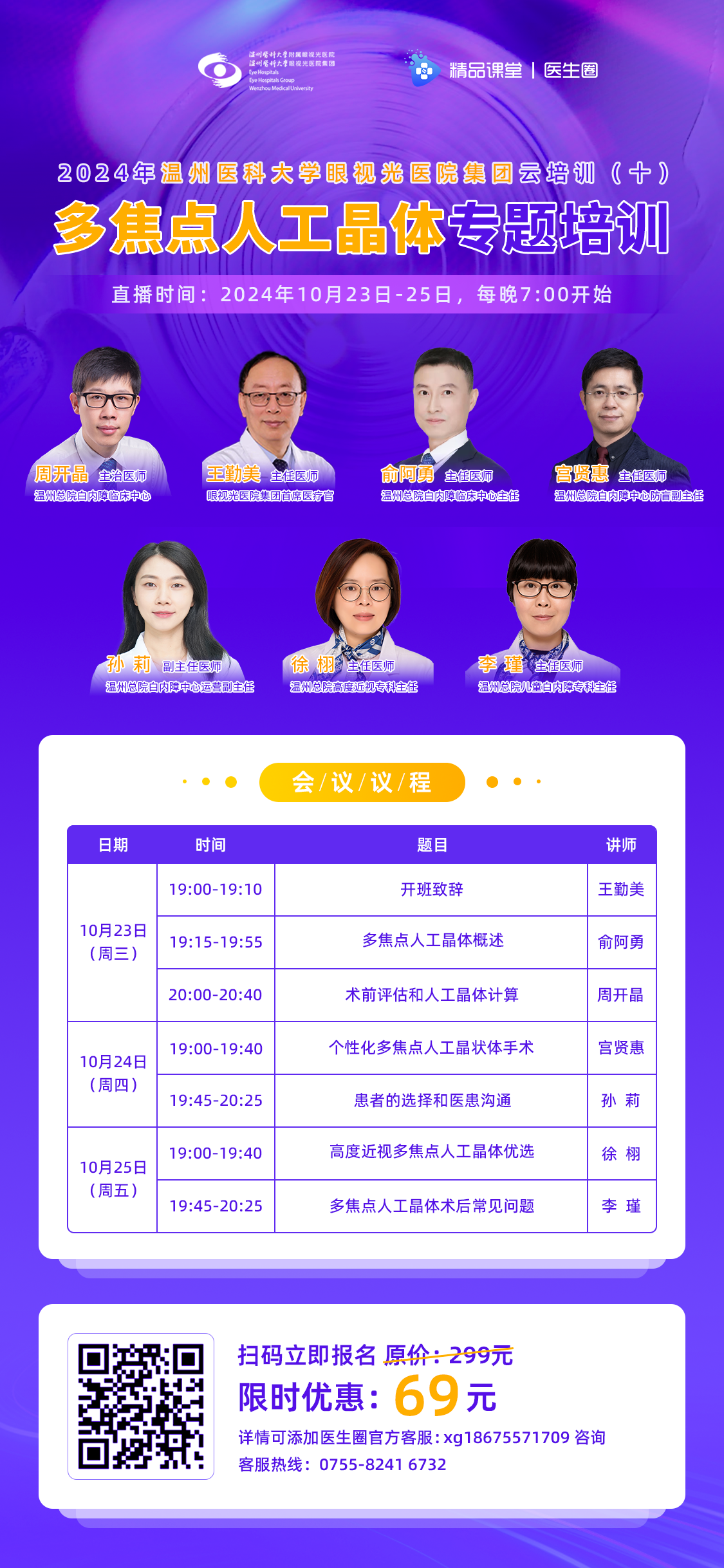 ? ? ? ?為提高眼科醫(yī)師對白內(nèi)障的診療水平,溫州醫(yī)科大學(xué)眼視光醫(yī)院集團(tuán)首席醫(yī)療官王勤美教授,攜手資深講師團(tuán),為大家?guī)?天6課時(shí)的“多焦點(diǎn)人工晶體”專題系列培訓(xùn)課程。授課內(nèi)容豐富,實(shí)用性強(qiáng),探討和解決臨床的實(shí)際問題。