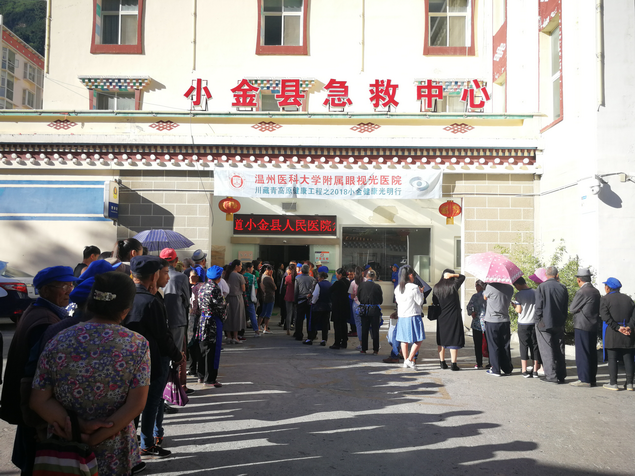 光明行活動(dòng)受到了小金縣人民的熱烈歡迎,活動(dòng)期間,在當(dāng)?shù)刂灰惶崞饻刂輥?lái)的,淳樸的小金縣人民便會(huì)如遇故人般地露出親切的笑容,并豎起大拇指,道一句:"哦!來(lái)給我們看眼睛的!"每天清晨,醫(yī)院的大門還未打開,小金縣人民醫(yī)院的門口就排起了長(zhǎng)長(zhǎng)的隊(duì)伍,有些老人甚至從附近的高山上,長(zhǎng)途跋涉,等待著來(lái)自溫州的專家為他們?cè)\治。回應(yīng)小金縣人民熱情和期盼的,是各位白內(nèi)障專家以及醫(yī)護(hù)人員日夜不辭辛勞的努力工作。診療室里,面對(duì)每天幾百號(hào)的病人,各位醫(yī)生盡管口干舌燥,聲音嘶啞,仍然耐心地指導(dǎo)患者配合檢查,解答患者的疑問(wèn)。手術(shù)室里,各位白內(nèi)障專家們聚精會(huì)神地進(jìn)行顯微鏡下精細(xì)的操作,用自己魔術(shù)師般的雙手為患者打開光明之路,每天三十多臺(tái)的手術(shù),顧不上喝一口水。